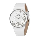 Capture the magic of winter with the crystal studded Paris Hilton Women's 138.5084.60 Mirror White Dial Watch. The round case and bezel are made of stainless steel, providing a slim frame for the white dial. Curving floral shapes in shining silver wind along the bottom of the face and up the right side, highlighting the petal-shaped hour and minute hands ticking in a center circle. A trail of glittering crystals moves along the left side, curling towards the brand name scripted above the hands. The band consists of smooth patent leather in pure white, and comes to a close with a sturdy buckle. This chic timepiece offers the reliability of quartz movement and is water resistant up to 99 feet (30 meters). Quartz Miyota GL20 movement Double dial with 10 crystals Stainless steel design on the bezel White patent leather strap Water-resistant to 99 feet (30 M)