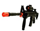 Very simliar to Mini Electric Airsoft guns, however full size version. Hold the trigger down and they keep firing! It shoots 6mm soft air pellets. Battery requied and INCLUDED. Each gun comes packed with 100 pellets in a beautiful color box. Don't forget to order extra ammo. These shoot farther and faster than most full auto airsoft guns. You will not be disappointed with the quality or the durability. This gun is made of ABS plastic. You can fire this gun as a semi auto if you push the trigger for one second. This is a fully automatic machine gun. Retractable Automatic Airsoft AEG Replica Rifle Integrated RIS w/ foregrip Adjustable Hop Up Battery and Charger Included This item is not for sale in some specific zip codes